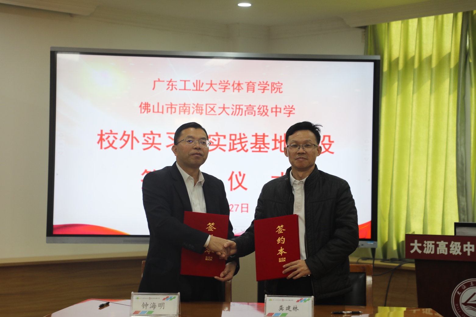 2026年1月27日,体育学院党委书记苏兆祥、院长龚建林、副院长符壮、张凤玲及男子篮球队教练员一行7人前往佛山大沥高级中学开展交流合作。大沥高级中学党委书记钟海明携学校领导班子热情接待我院一行,并介绍了大沥高级中学的特色发展道路及取得的优异成绩。副校长刘强初则介绍了学校办学现状与篮球队建设规划。龚建林院长介绍了广东工业大学和体育学院的基本情况,特别是体育学院的学科特色、人才培养模式以及篮球发展状况,并表达了深化校际合作、强化协同育人、建设篮球人才培养基地的意愿。两所学校在以体育人、特色发展上都积累了丰硕成果,在人才培养上有共同诉求。双方围绕体教融合、体育人才培养、篮球队建设等进行了深入探讨,并就合作细节进行深入交流与沟通,在热烈的气氛中签署了实习实践基地协议。