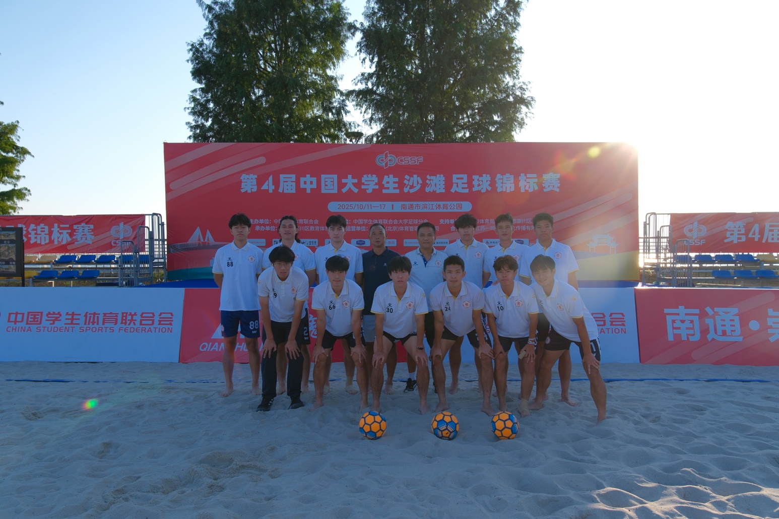 第4届中国大学生沙滩足球锦标赛于2025年10月11日至17日在江苏省南通市崇川区滨江体育公园举行。我校高水平足球队选派12名队员出征,历经八天激烈角逐,最终荣获全国第五名的佳绩。
