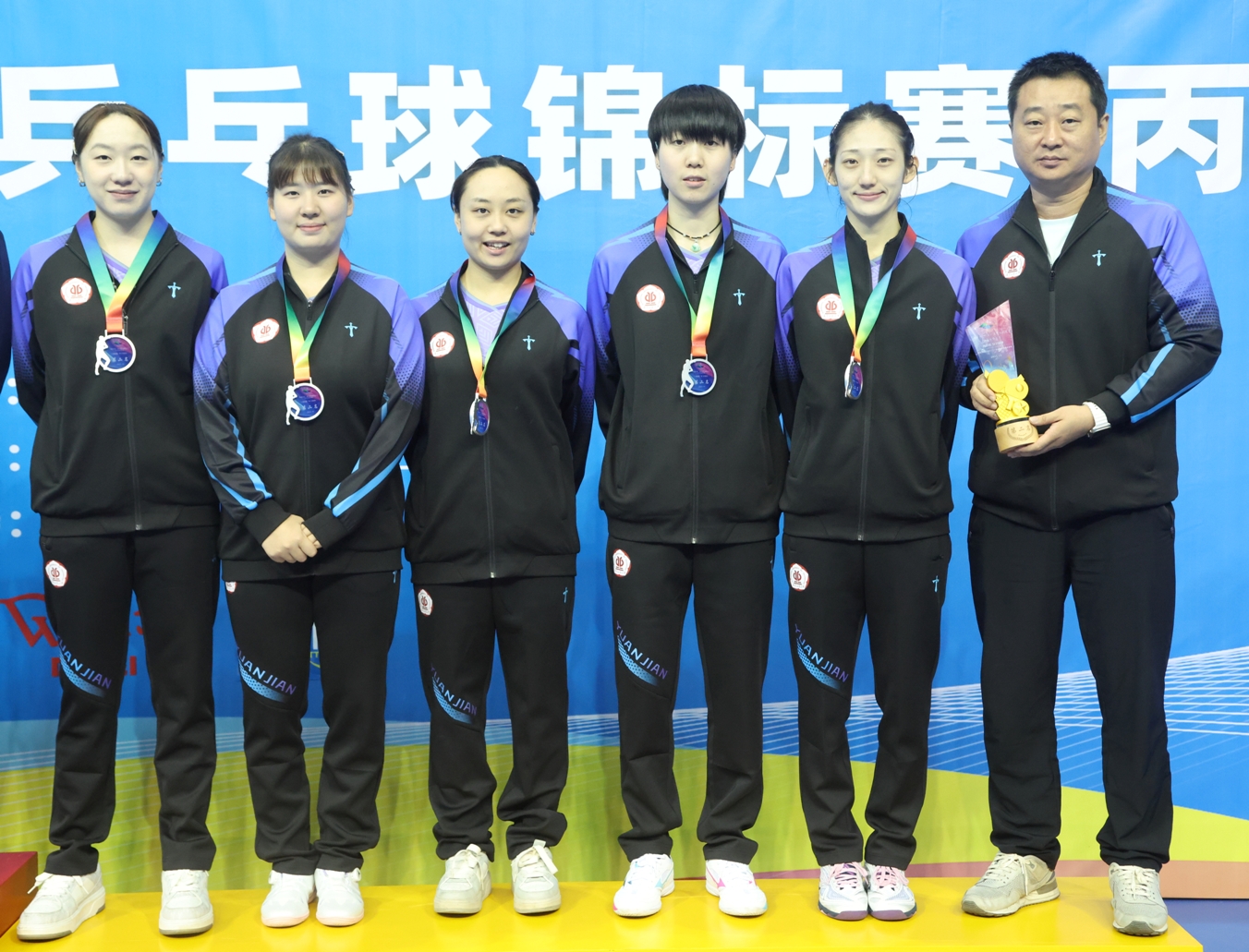 女子团体亚军(蔡明慧、李琰洁、刘依婧、林子清、孙千然、贾佳)
