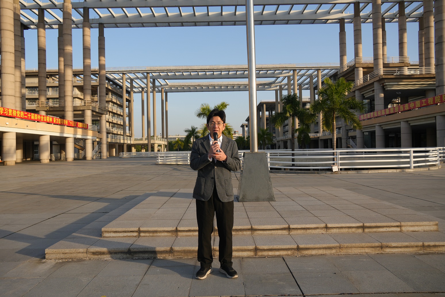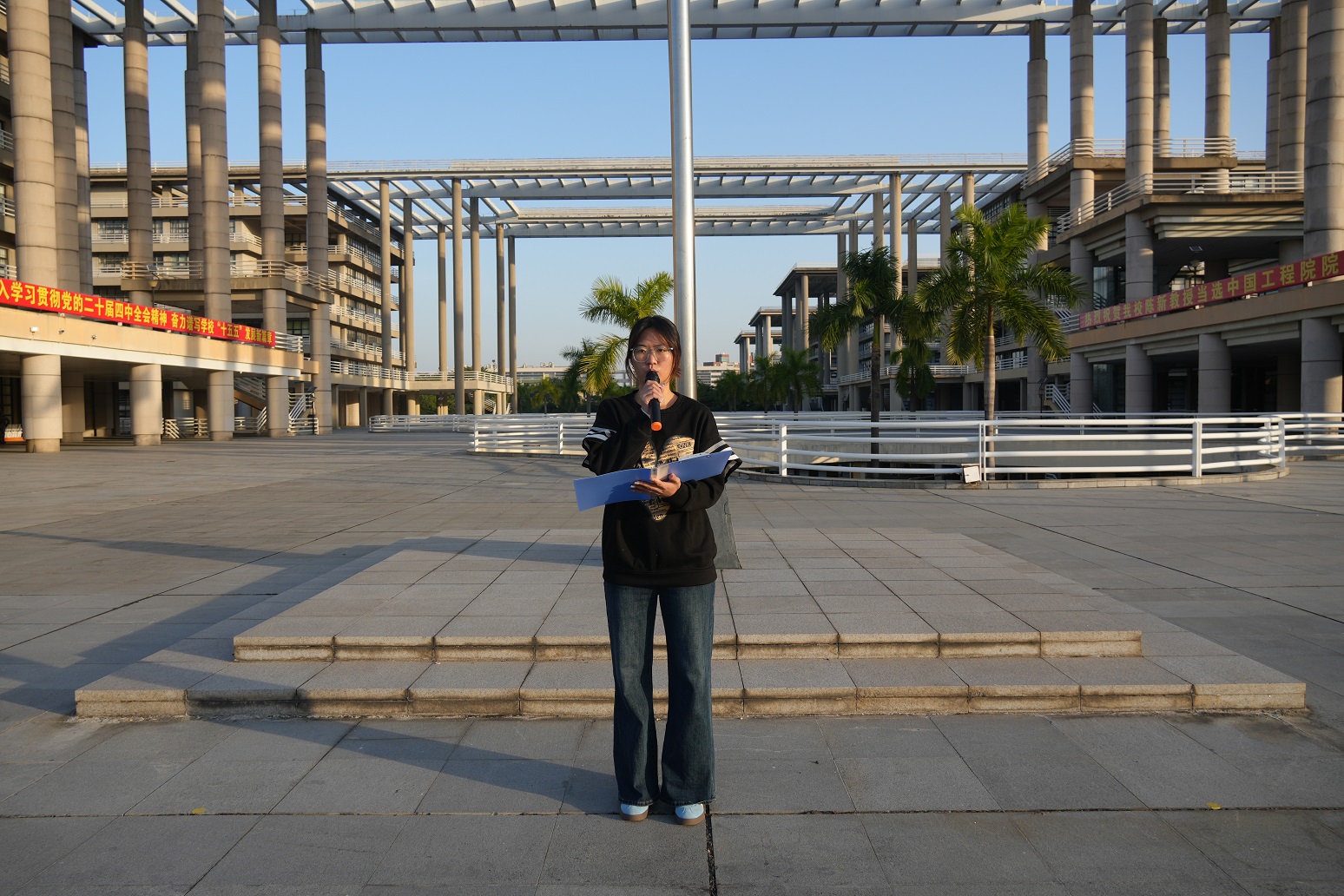 为进一步厚植爱国主义情怀,切实增强新时代体育青年的使命担当,11月26日清晨,体育学院在大学城校区正门举行“铭记历史当自强 奋勇逐梦谱华章”升国旗主题教育活动。学院党委副书记林焕章,辅导员黎灿宇,2024级学生代表及2025级全体学生参加了本次活动。