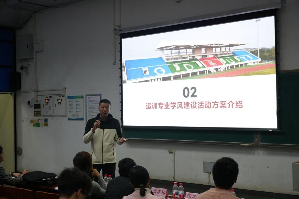 运动训练系副主任苏朋围绕《运动训练专业学风建设活动方案》进行详细介绍。针对学院部分学生存在的“重实践、轻理论”现象,明确了活动的核心目标,通过引导同学们树立正确学习观,着力培养学生良好学习习惯,提升专业理论知识的理解与运用能力,进而营造全员勤学、善学、笃学的优良学风氛围。