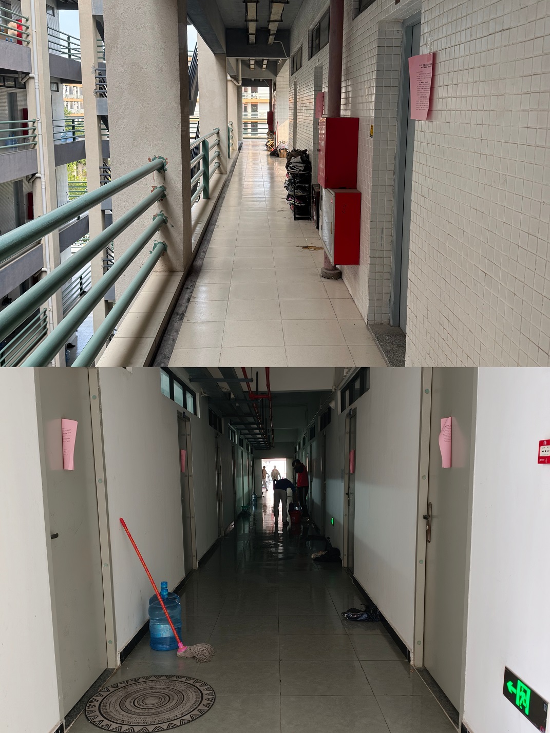 活动中,大家按照活动要求,有条不紊地开展清洁工作:细致收纳个人物品,让宿舍物品摆放规范有序;全面清扫桌面、地板,重点清理阳台、卫生间、冲凉房等卫生死角;及时将室内及门前垃圾杂物分类打包并定点投放;同时细致排查消防安全隐患,自查清理大功率电器,规范充电设备与电线插座使用;针对宿舍楼楼道内无人认领的杂物、废弃物品进行集中清理,为全体同学营造整洁有序的公共生活空间。